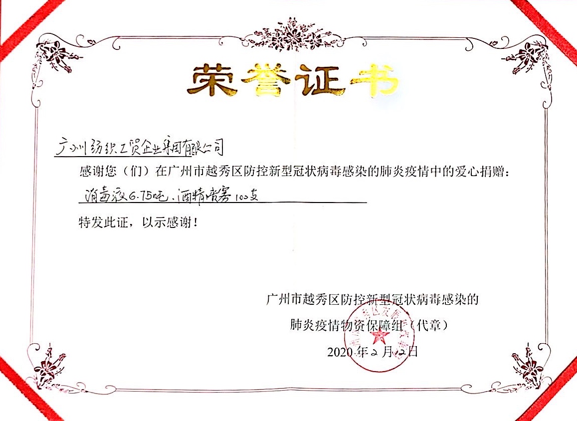 自新型冠状病毒感染肺炎疫情发生以来,疫情的进展牵动全国人民的心。越秀区人大代表、广州轻工集团副总经理、纺织工贸集团党委书记、董事长林虎坚决扛起应对疫情的政治责任,忠实履行代表职责,切实发挥代表作用,利用身在基层、贴近实际的优势,积极投身疫情防控工作。当了解到街道防护物资缺乏的情况后,他一方面积极组织捐赠一批重达6吨多,价值约6.3万元的天丽漂渍液、杀菌酒精喷雾给越秀区政府以解燃眉之急,另一方面充分发动其他人大代表捐款筹备物资支援越秀区各街道抗疫,以实际行动支持街道防疫工作。