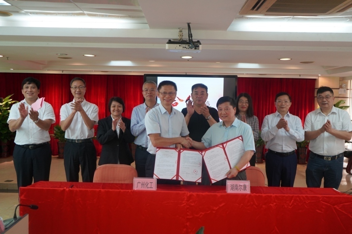 签约仪式由纺织公司常务副总经理葛伟志主持。广州化工党总支书记、董事长马裕填与湖南尔康集团董事长帅放文作为双方企业代表分别致辞,并签订战略合作协议。