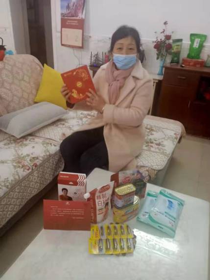 杨喜文爱人在老家湖北黄冈收到集团公司寄送的大礼包