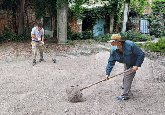在平整维护过程中,物业安全部人员对低洼地段用石粉进行填铺及清理围墙内杂草、树枝垃圾等杂物,并对园区内的排水系统、消防设施等园区重点部位进行检查,以消除安全隐患。