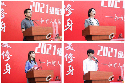 2021级外语外贸学院经济贸易系国贸专业新生高博宇代表新生发言。他表达了对大学学习生活的憧憬,并立志不负青春不负韶华,希望三年后能够在学院留下青春最美的足迹。