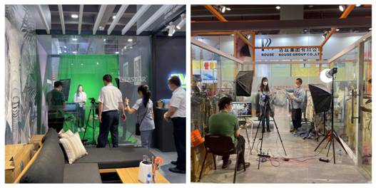 结合本次线上线下融合办展的特点,纺织公司各参展企业妙计频生,通过构建虚拟展厅、三维产品、视频拍摄、直播营销等,积极打开传统外贸新思路。国贸部在展馆内外设置了直播间,以实时配合馆内情况进行直观展示。家具摊位还采用绿幕技术进行直播,将尽可能多的产品展示给客户;广州化工根据实际情况进行录播,结合客户观看时长、喜好等,以精短视频方式进行展现。