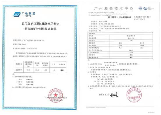 近日,广东广纺检测技术股份有限公司喜报连连,接连收到南京海关工业产品检测中心组织的“熔喷布过滤效率的测定”“纺织品织物透气性的测定”、广州海关技术中心组织的“纺织品纤维含量分析”、广东省市场监督管理局组织的“医用口罩过滤效率的测定”等四个能力验证结果反馈,全获满意结果。