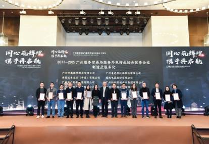 1月19日,广州服务贸易与服务外包行业协会在广州举行成立十周年庆礼,并就广州服务贸易与服务外包优秀专家、各行业广州服务贸易与服务外包优秀企业等进行了表彰。广州纺织品进出口集团有限公司(以下简称纺出公司)成为2011-2021年度广州服务贸易与服务外包优秀企业。