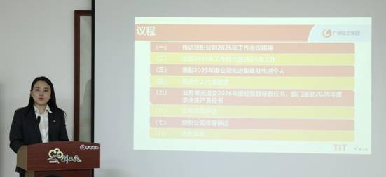 会上,公司副总经理黄小浔传达了纺织公司2026年工作会议精神,使全体干部职工进一步明确了纺织公司战略方向与年度重点,为利工民公司新的一年各项工作开展确立了行动纲领、统一了思想基调。