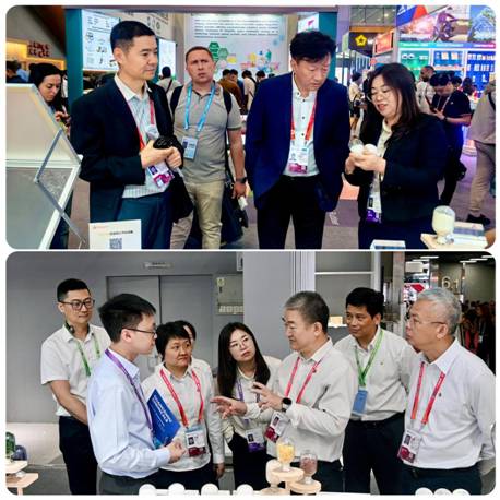 四海商聚,万象更新。4月15日,第139届广交会如约而至,全球客商再度汇聚广州。广州化工进出口有限公司(以下简称“化工公司”)十大核心系列产品矩阵精彩亮相,凭借紧密的产业链协同能力与专业化的品牌形象在开幕首日迅速集聚大量人气。会展首日,中国五矿化工进出口商会会长刘丹阳一行,及轻工集团党委书记、董事长林虎率集团及纺织公司领导一行先后莅临化工公司展位,为化工公司团队注入强劲信心。